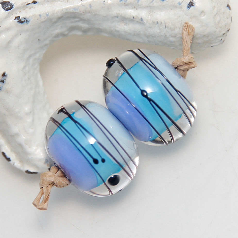 Whispy Light Sapphire Blue Lampwork Glass Bead Pair