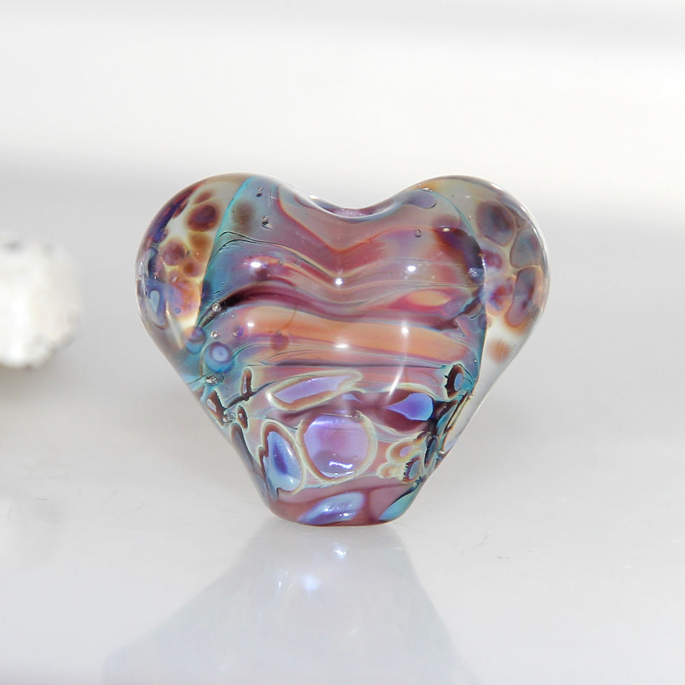 Purple Colourful Lustre Heart Lampwork Glass Bead