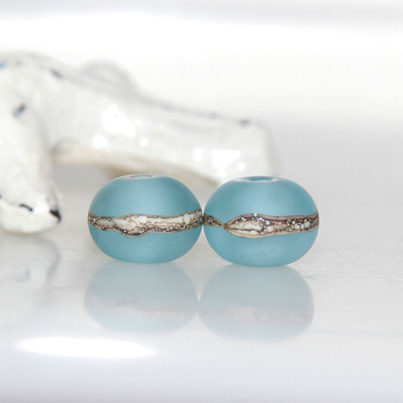 Little Frosted Steel Blue Lampwork Glass Bead Pair