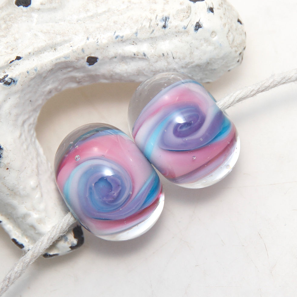Purple Aqua and Pink Swirly Glass Bead Pair