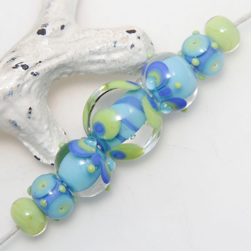 Periwinkle Blue and Green Mixed Lampwork Glass Bead Set